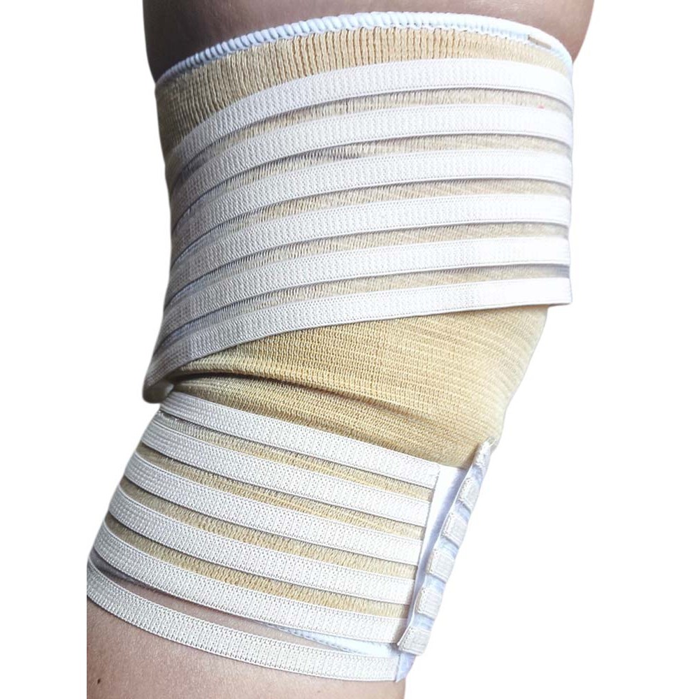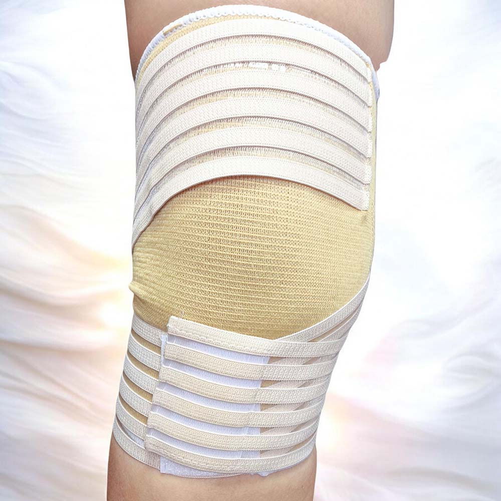 Изделие стягивает связки и мышцы, поддерживается их и защищая от чрезмерной нагрузки.