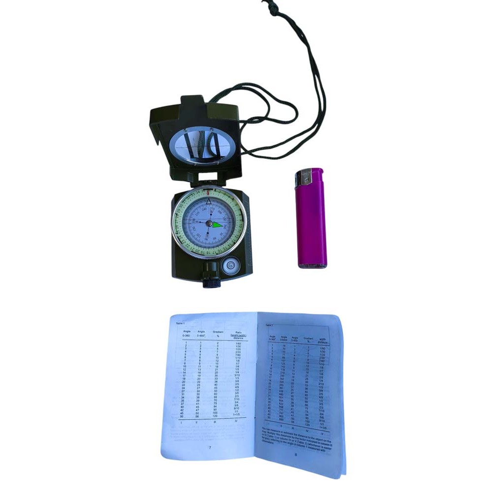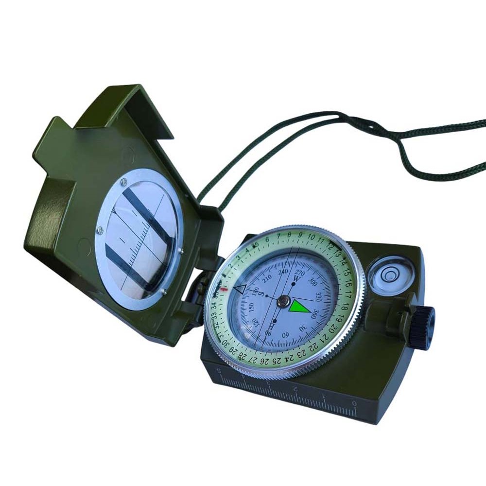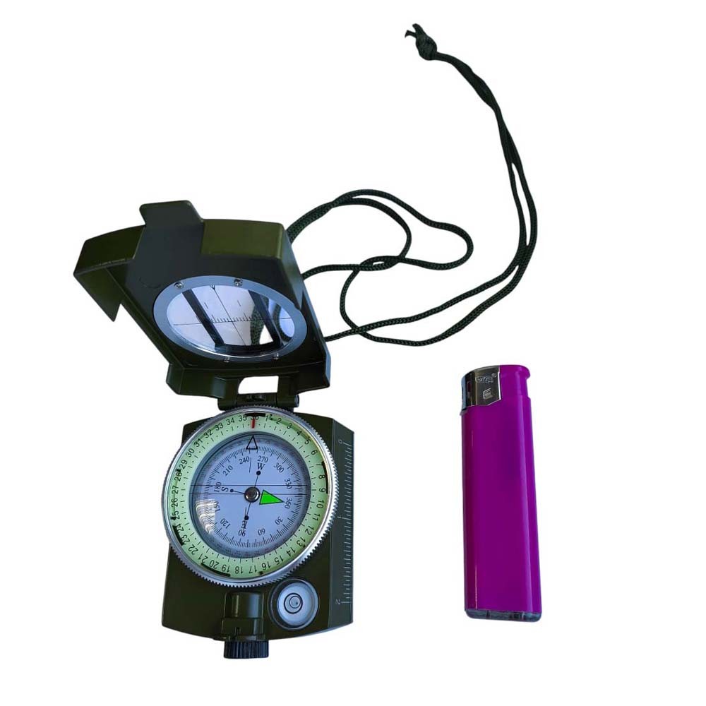 Компас туристический жидкостный армейский магнитный металлический со светящимся в темноте фосфорным циферблатом и прицельной нитью.